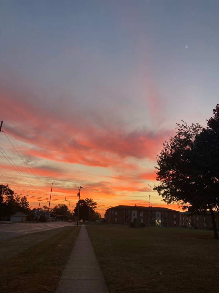 Having mastered noticing when in a beautiful setting, I decided to try it out closer to home. I started taking early morning walks, leaving when it was dark, and returning after dawn. I not only began noticing slight changes in the weather, the crunch of leaves under my feet and the beauty of a sunrise, the moon still hanging on in the sky, but I also passed neighbors’ homes as their lights clicked on. I was reminded that while I peeled myself out of bed in the morning, others did too. I didn’t know what their days held, but I became aware of a hundred different ecosystems in the homes I passed, and could imagine others bolstering themselves for a new day, coffee or tea at hand.